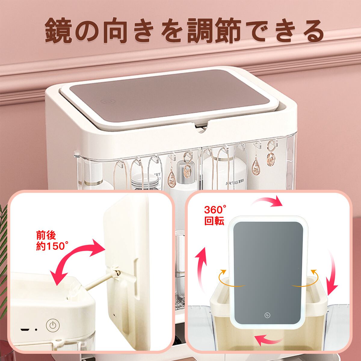 【RAKU】正規品 メイク収納ボックス LEDタイトある コスメ収納ボックス アクセサリー収納 化粧品収納ボックス LEDライト鏡付き 360度回転 化粧品収納 小物入れ 化粧品入れ リップ収納 ジュエリー収納 おしゃれ